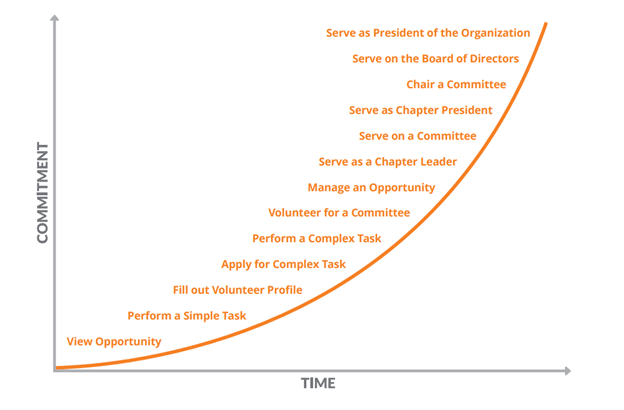 Offer micro-volunteering opportunities to build a broader base of contributors. Make it easy for members to take on small, time-bound tasks that still make a difference. Then nurture those light-touch volunteers into deeper involvement over time using a commitment curve model.